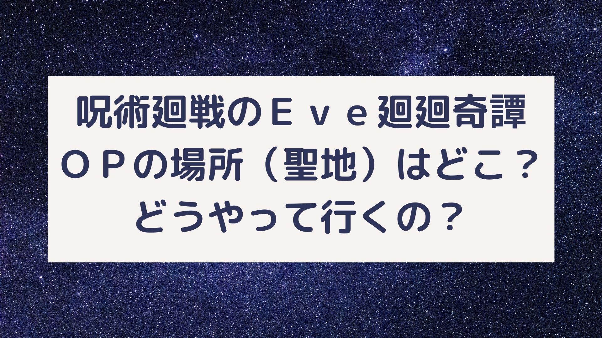 今回は、呪術廻戦のEve廻廻奇譚OPの場所(聖地)はどこで、どうやって行くのか?ご紹介します。