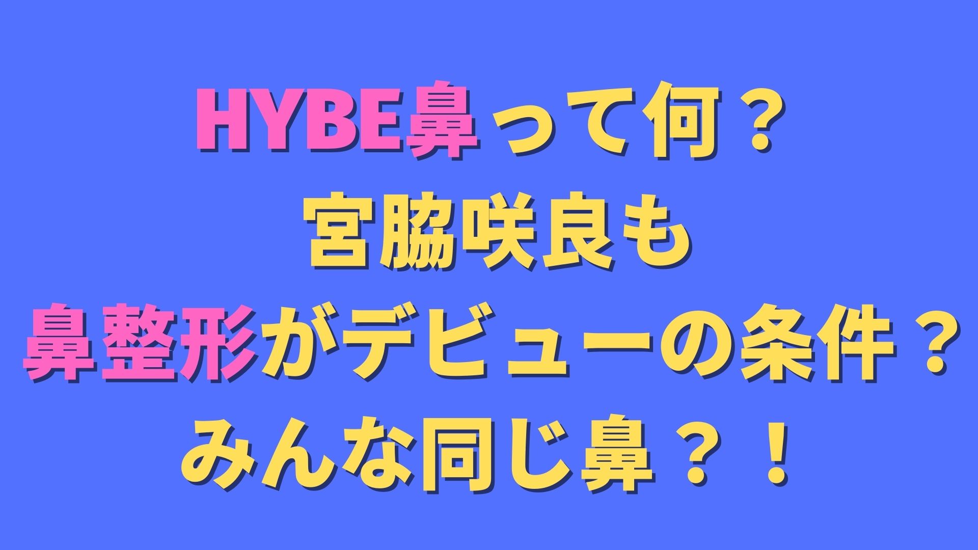 HYBE鼻(ハイブ鼻)とは、韓国の芸能事務所HYBEに所属するアーティストが整形によってみんな同じ鼻の形をしていることでHYBE鼻と言われるようになりました。
