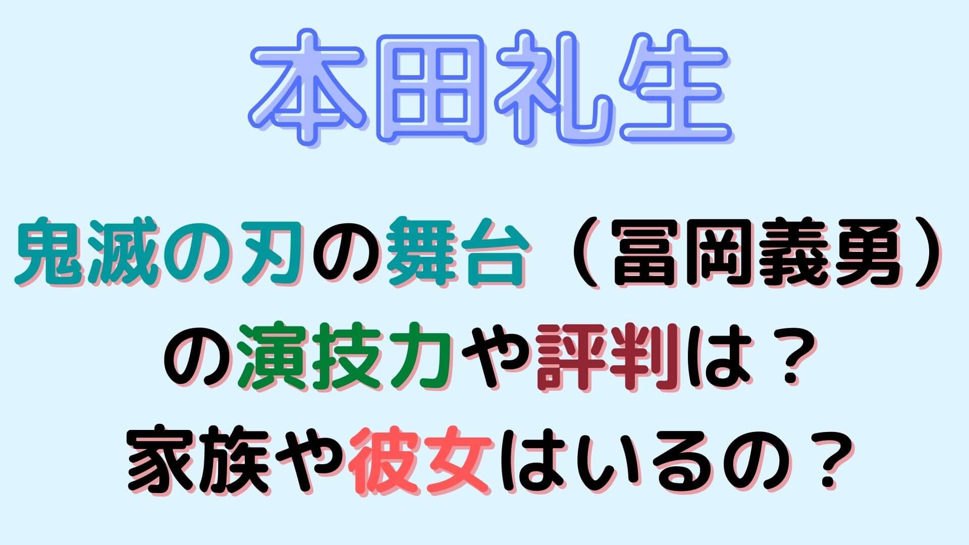 この記事では、「本田礼生(冨岡義勇)の演技力や評判は?家族や彼女はいるの?」と題して本田礼生さんに迫っていきたいと思います。