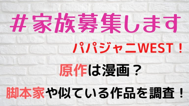 「#家族募集します」がTBS金曜日10時から放送されます。 パパジャニWESTと言われている重岡大毅さんもジャニーズ初のパパ役で登場するという事でも話題です。 話題になっている作品ですので、原作はあるのか?それともオリジ
